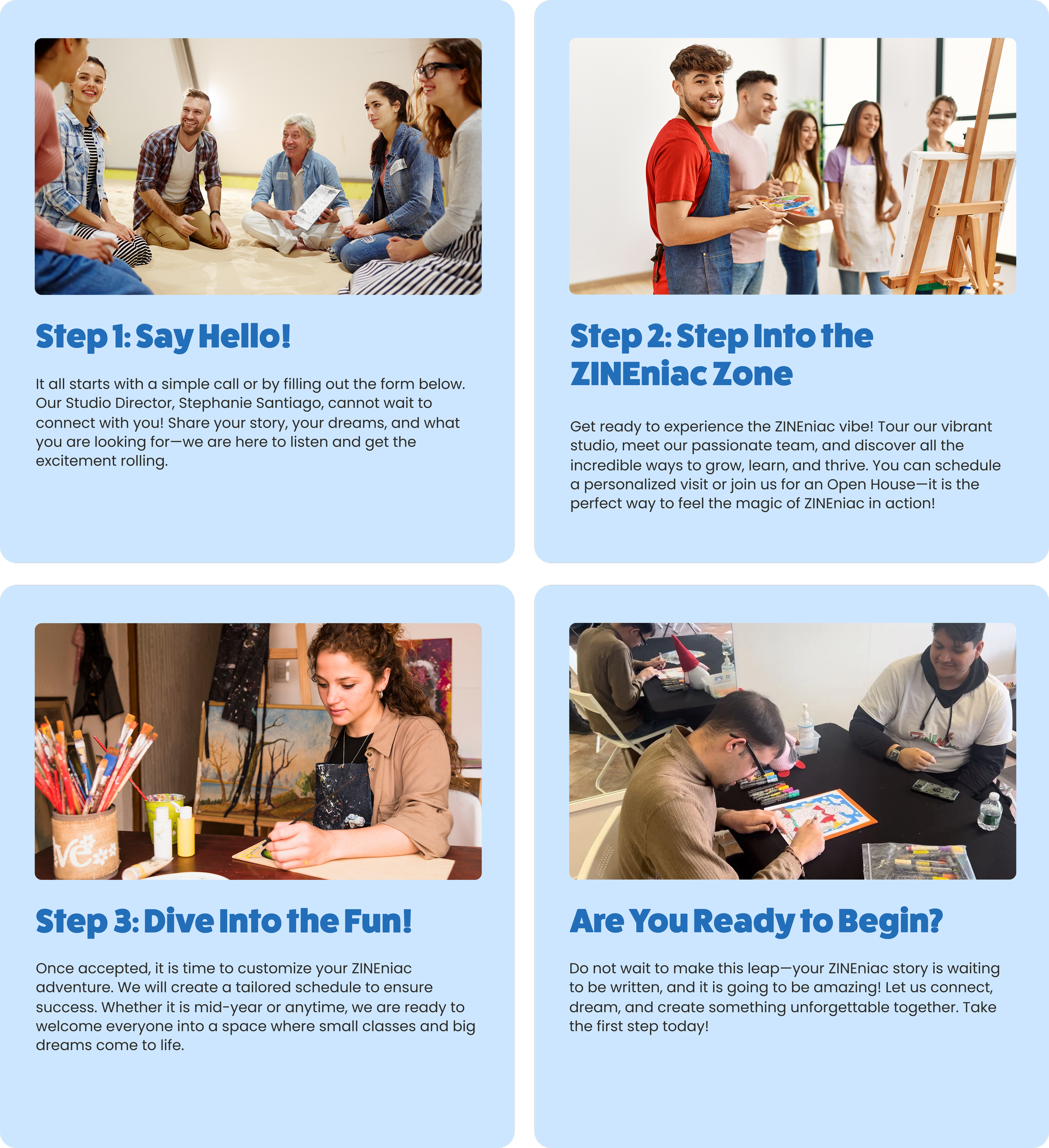 At ZINEniac, we do not just enroll students—we spark journeys full of creativity, growth, and endless possibilities! Our admissions process is more than a few steps; it is the start of an exciting adventure for everyone!